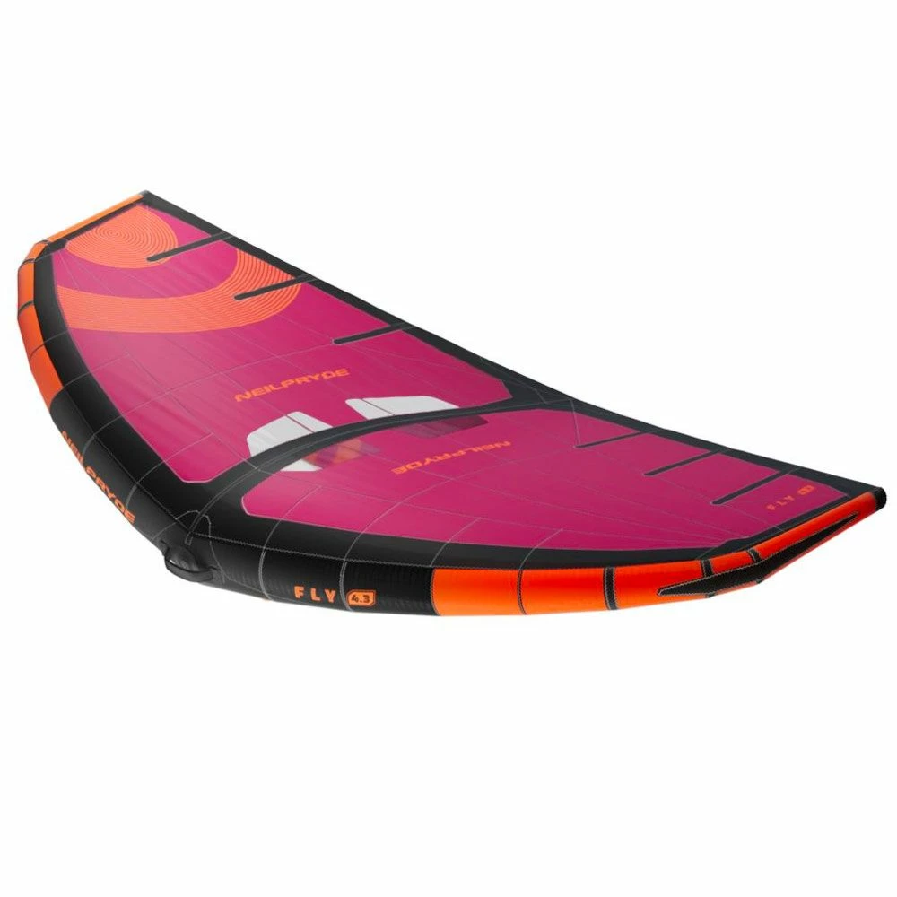 This wing from Neilpryde has a super efficient design. The Delta shape is optimized and has the ultimate power and speed at any size. The clever design allows you to always sail the wing one size smaller than you are normally used to. The smaller size maintains maneuverability and a comfortable feel. The Fly Wing has high elevator and optimized wingtips.