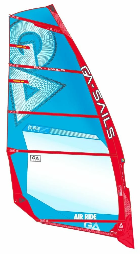 The AirRide is a sail known for its light weight and easy maneuverability. For 2021, the batten rotation above the boom on the 5.7 and 6.7 m2 sails has been improved for a super smooth ride and jibing in lightest winds. On the 7.7 m2, the upper leech has been stabilized and they flattened the entry of the luff. This has improved the sail’s characteristics, allowing you to go through a jibe even more smoothly. The lightweight construction makes the sail also very suitable for foiling.