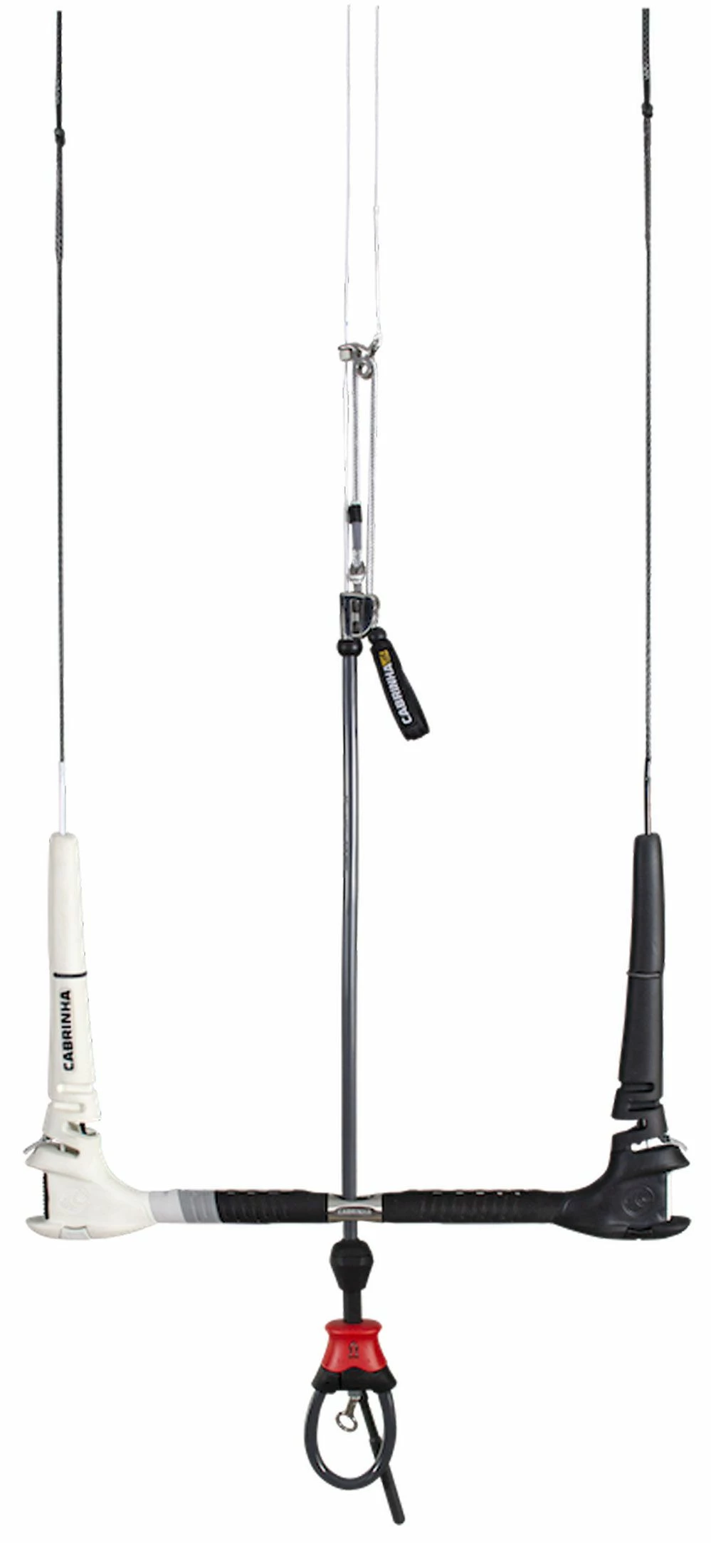 The new Overdrive system from Cabrinha is now on all bars. With the Overdrive system you can adjust the bar in width. The new system works with an insert in the end of the bar to which the steering line is attached. You can remove the insert from the bar end and attach the steering line further in or out of the bar. This makes the bar adjustable in width from 44 to 52 (M) and 52 to 60 (L).