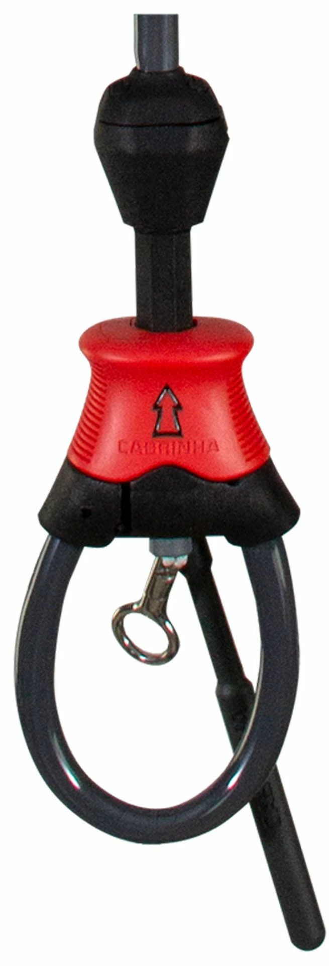 A swivel has been placed above the 1X safety system so that you can twist your power lines apart. The safety system itself is clearly recognizable by its red color and easy to activate by pushing it away from you.