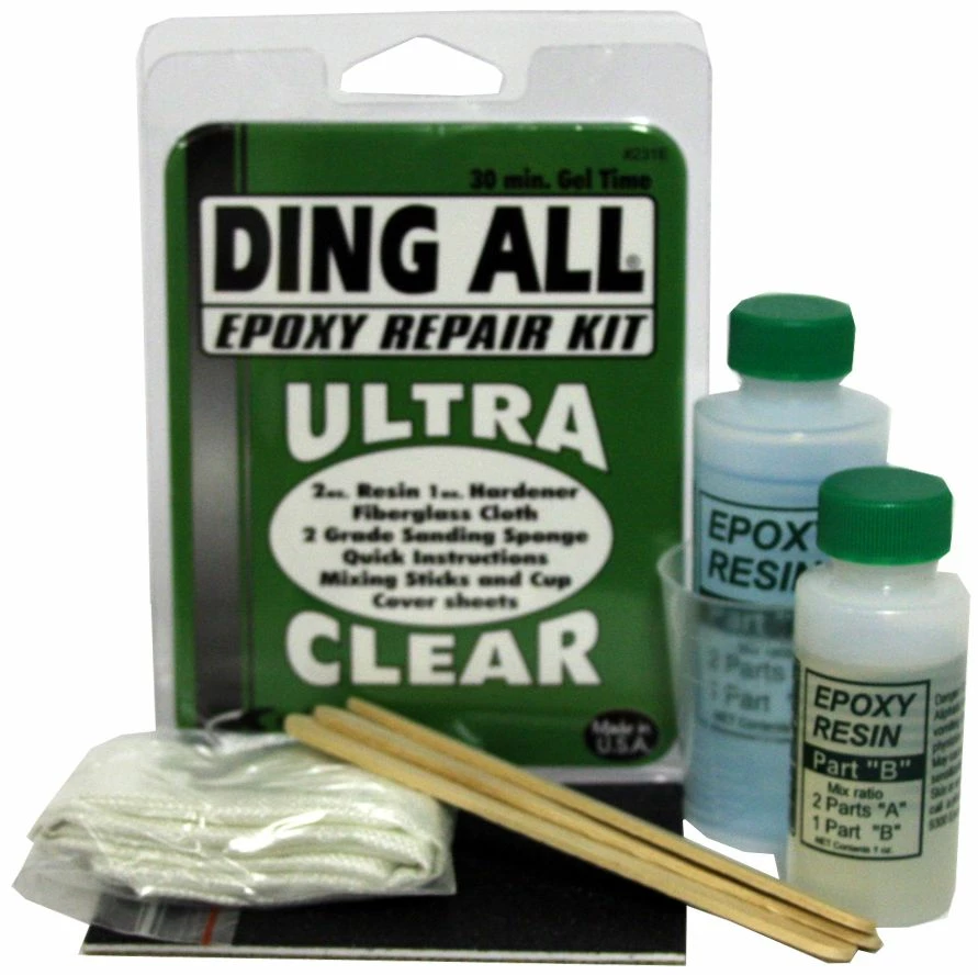 Dieses Windsurf-Reparaturset ist für einen Großteil Ihrer Board-Reparaturen vollständig genug. Inhalt: – 3 Unzen (fast 100 ml) Epoxy – Epoxy-Härter – Glasfasermatte – 2 Arten von Sandpapier – Stick – Reinigungstücher – Anleitung