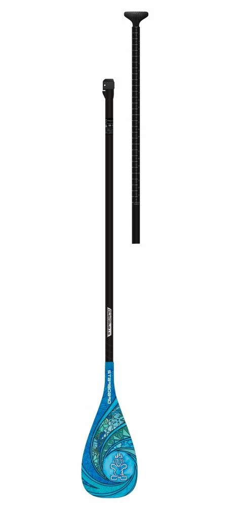 The Starboard Enduro paddle is more direct in the water compared to the Lima paddles. The first stroke in the water feels incredibly precise and powerful. The angle of the Enduro blade makes this paddle so versatile. The blade has a 12° angle, allowing you to use the paddle in many different conditions. The Enduro Tiki Tech has extensive reinforcement on the neck of the blade for greater overall strength. Additionally, this paddle is a 2-piece, making it easy to take the paddle anywhere. The Starboard Enduro is ideally suited for power paddlers!